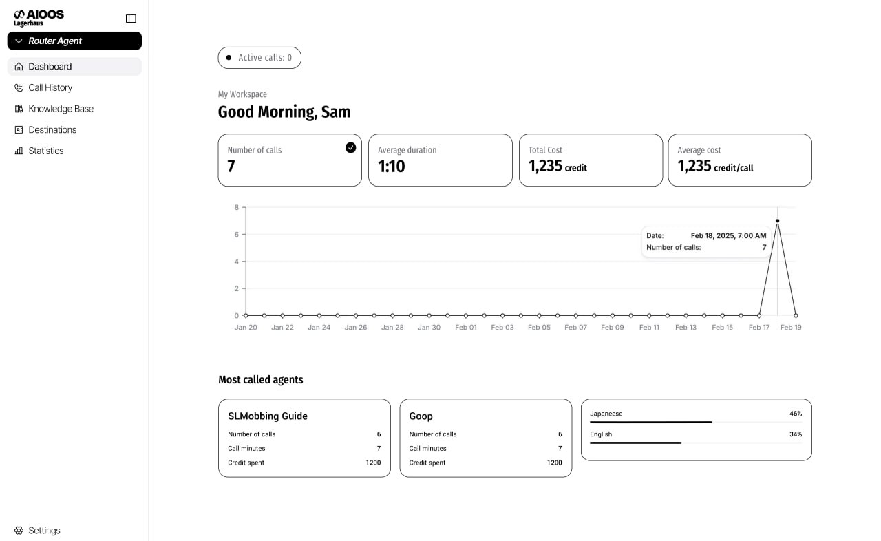 Aioos is an intelligent AI voice assistant developed by Innerstate for companies looking to take their telephony to the next level. It answers phone calls, understands what the caller needs and acts accordingly – just like a human receptionist, but with the power to handle multiple calls simultaneously, around the clock. Talking to Aioos should feel natural. At the same time, it's always transparent: the caller knows they're speaking with an AI. Aioos is trained specifically for your company and responds correctly, professionally and consistently based on the information you provide.